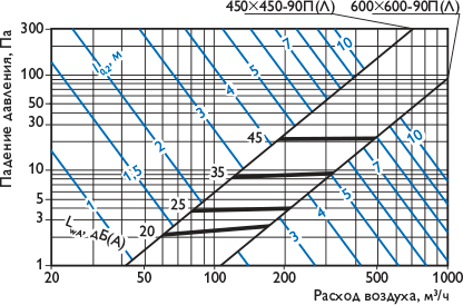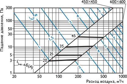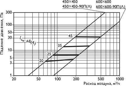 Акустические характеристики приведены для расхода воздуха L0 = L0 прит = L0 выт , м3/ч. |