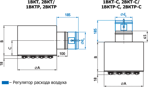 Воздухораспределители панельные 1ВКТ, 1ВКТР, 2ВКТ, 2ВКТР