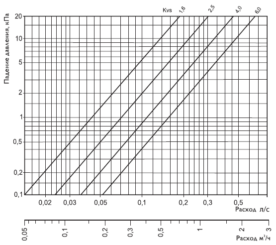 указан в м3/час при перепаде давления 100 кПа. |