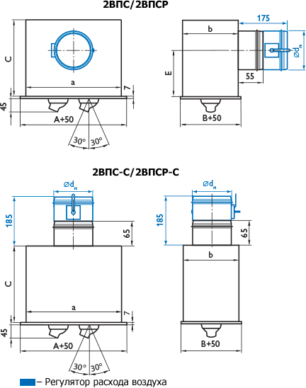 | Характеристики воздухораспределителей 2ВПС, 2ВПСР |