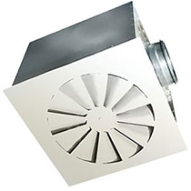 Воздухораспределители панельные 3ДПЗ, 3ДПЗР предназначены для подачи воздуха системами вентиляции и кондиционирования в изотермическом и неизотермическом режимах (нагрева и охлаждения) из верхней зоны помещений горизонтальными настилающимися закрученными струями. Вихревой режим течения приточного воздуха на выходе из воздухораспределителя позволяет повысить коэффициент эжекции окружающего воздуха к приточной струе по сравнению с прямоточными струями и, как следствие, увеличить интенсивность снижения скорости и выравнивания температуры в струе с температурой помещения. Воздухораспределители 3ДПЗ, 3ДПЗР рекомендуется применять в помещениях, где требуется повышенная кратность воздухообмена и избыточная температура приточного воздуха Δt0≥5°C (производственные помещения, концертные и торговые залы, спортивные сооружения, вокзалы, аэропорты и т. д.). Воздухораспределители 3ДПЗ, 3ДПЗР состоят из воздухораздающей панели квадратной формы, в центре которой диффузор с закручивающими лопатками, и камеры статического давления (КСД) с подводящим патрубком круглого сечения. КСД имеет боковой или торцевой подвод и обеспечивает равномерное истечение воздуха из воздухораспределителя. Для изменения и регулирования расхода воздуха воздухораспределители 3ДПЗР дополнительно оснащаются регулятором расхода воздуха, установленным в подводящем патрубке КСД. Воздухораспределители 3ДПЗ, 3ДПЗР встраиваются в подвесные потолки, при этом обеспечивается настилание горизонтальной струи на потолок, или устанавливаются на отводах круглых воздуховодов при открытой прокладке воздуховодов. Герметичность соединения с подводящим воздуховодом обеспечивается резиновым уплотнением. Панель окрашивается методом порошкового напыления в белый цвет (RAL 9016), КСД — неокрашенная оцинкованная сталь. При изготовлении на заказ возможна окраска панели и КСД в любой цвет по каталогу RAL. | ||||||||||||||||||||||||||||||||||||||||||||||||||||||||||||||||||||||||||||||||||||||||||||||||||||||||||||||||||||||||||||||||||||||||||||||||||||||||||||||||||||||||||||||||||||||||||||||||||||||||