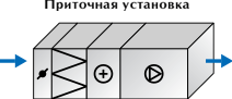 - Двухступенчатая защита водяного калорифера по температуре обратной воды и по температуре воздуха (капиллярный термостат).