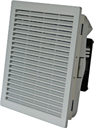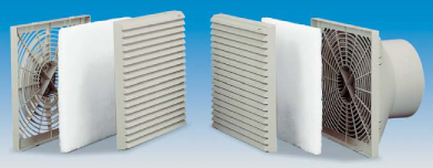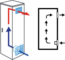 Наружный воздух очищается фильтром и подается вентилятором в нижнюю часть шкафа. После охлаждения компонентов шкафа воздух удаляется через установленную в верхней части шкафа вытяжную решетку. Такая схема работы обеспечивает долговременную бесперебойную работу вентиляции. Избыточное давление, создаваемое в шкафу вентилятором, препятствует поступлению в шкаф загрязненного воздуха через неплотности и отверстия. При монтаже устанавливайте вентилятор и вытяжную решетку на максимально возможном расстоянии. Для длительной и надежной работы вентиляции необходимо регулярное обслуживание фильтра.