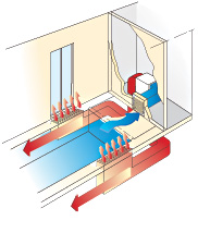 Осушитель снабжен высоконапорным трехскоростным центробежным вентилятором с непосредственным приводом. Высокая или средняя скорости используются в режиме осушения или нагрева воздуха, при отсутствии потребности в осушении или нагреве вентилятор работает на низкой скорости. Выбор между высокой и средней скоростью осуществляется при пуско-наладочных работах для согласования с сетью воздуховодов.
