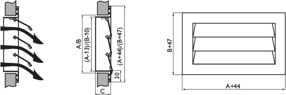Инерционные решетки АГС предназначены для автоматического перекрывания воздуховодов с целью исключения свободного перетекания воздуха в вентиляционных системах и для автоматического перекрывания выбросных отверстий при неработающем вентиляторе. Решетка должна устанавливаться вертикально, лопастями вниз. Минимальный размер решетки 150×150 мм, максимальный — 1000×1000 мм, с шагом 50 мм. Решетки изготавливаются из алюминия и окрашиваются методом порошкового напыления в белый цвет (RAL 9016). При изготовлении на заказ возможна окраска решеток в любой цвет по каталогу RAL или текстурирование. | ||||||||||||||||||||||||||||||||||||||||||||||||||||||||||||||||||||||||||||||||||||||||||||||||||||||||||