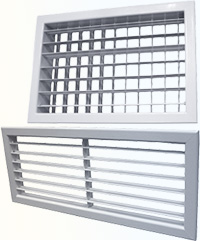 Решетки АМН-К и АМР-К снабжены одним, а АДН-К и АДР-К двумя рядами индивидуально регулируемых жалюзи, предназначенных для изменения направления и характеристик приточной струи. Жалюзи установлены в пластиковые втулки, которые облегчают их поворот при регулировании.