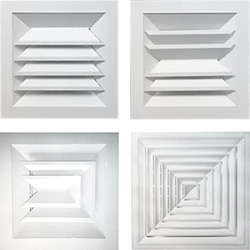 Потолочные диффузоры АПН, АПР предназначены для подачи и удаления воздуха системами вентиляции и кондиционирования в помещениях различного назначения. Диффузоры АПН/АПР представляют собой корпус прямоугольной формы с центральной частью в виде съемного блока из направляющих пластин, который при необходимости легко демонтируется. Блок направляющих пластин изготавливается с односторонней, двухсторонней, двухсторонней угловой, трёхсторонней или четырёхсторонней подачей воздуха. Диффузоры АПР дополнительно оснащены встроенным в корпус регулятором расхода воздуха. Регулирование расхода осуществляется вручную, без использования инструмента, при помощи специального флажкового механизма. Минимальный размер диффузоров 225×225 мм, максимальный — 1050×1050 мм, с шагом 75 мм. Потолочные диффузоры изготавливаются из алюминия и окрашиваются методом порошкового напыления в белый цвет (RAL 9016). При изготовлении на заказ возможна окраска диффузоров в любой цвет по каталогу RAL. | ||||||||||||||||||||||||||||||||||||||||||||||||||||||||||||||||||||||||||||||||||||||||||||||||||||||||||||||||||||||||||||||||||||||||||||||||||||||||||||||||||||||||||||||||||||||||||||||||||||||||||||||||||||||||||||||||||||||||||||||||||||||||||||||||||||||||||||||||||||||||||||||||||||||||||||||||||||||||||||||||||||||||||||||||||||||||||||||||||||||||||||||||||||||||||||||||||||||||||||||||||||||||||||||||||||||||||||||||||||||||||||||||||||||||||||||||||||||||||||||||||||||||||||||||||||||||||||||||||||||||||||||||||||||||||||||