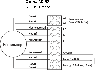 Все двигатели оснащены встроенной защитой от перегрузки. Все вентиляторы имеют два подсоединительных вывода реле аварии (AL), к которым можно подключать устройство аварийной сигнализации.
