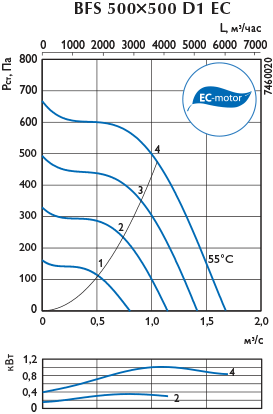 Вентиляторы BFS EC предназначены для соединения с воздуховодами квадратного сечения. Степень защиты электродвигателя и клеммной коробки - IP 54