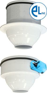 - 3СДК...-E1 — для монтажа на плоских поверхностях, с патрубком для подсоединения к воздуховоду (2-х позиционное управление);