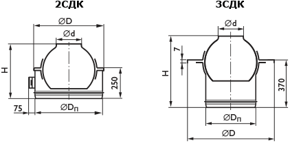 - 2СДК...-М2 — для монтажа в торцах круглых воздуховодов (пропорциональное управление 0...10 В);