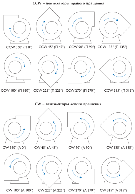 Положение корпуса вентилятора