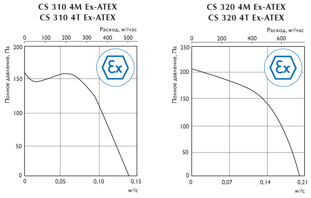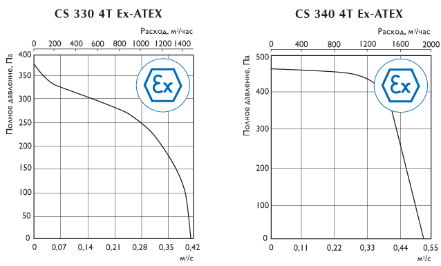 Центробежные взрывозащищенные вентиляторы с односторонним всасыванием CS Ex-ATEX предназначены для перемещения и удаления газообразных смесей из взрывоопасных зон в соответствии с присвоенной маркировкой взрывозащиты – 1ExdIIС для CS 310÷330 и 1ExdIIB для CS 340.