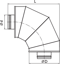 Корпус шумоглушителя выполнен изогнутым под углом 90° и изготовлен из оцинкованной стали. Внутри корпуса находится слой звукопоглощающего материала из минерального волокна.