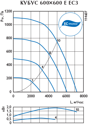 Канальные вентиляторы в изолированном корпусе КУБУС ЕС оснащены электронно-коммутируемым двигателем (EC-двигателем) с внешним ротором и рабочим колесом с загнутыми назад лопатками аэродинамически оптимизированной формы. Корпус вентилятора снабжён слоем изоляции из минеральной ваты толщиной 25 мм, обеспечивающей низкие шумовые характеристики. Верхняя и две боковые панели корпуса, а также выходной фланец выполнены съемными, что позволяет, при необходимости, в любой момент изменить направление подачи воздуха и сторону обслуживания вентилятора (ниже размещен чертеж и видеофильм). Вентиляторы КУБУС ЕС предназначены для соединения с воздуховодами квадратного сечения. Степень защиты электродвигателя и клеммной коробки - IP 54 Преимущества вентиляторов КУБУС EC