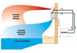 В этих моделях установлен дополнительный конденсатор водяного охлаждения, через который циркулирует вода бассейна. Конденсатор предназначен для утилизации тепла, высвобождающегося при осушении воздуха.