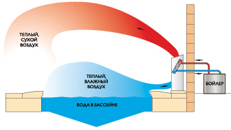 В задней стенке корпуса есть отверстие, которое возможно использовать для подачи небольшого количества свежего воздуха в бассейн. Подача воздуха осуществляется за счет работы вентилятора осушителя.