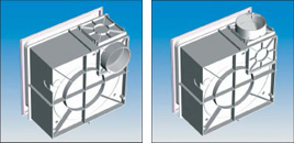 В конструкции вентиляторов предусмотрена возможность изменять направления выброса воздуха, что обеспечивается с помощью оригинальной конструкции обратного клапана. Все модели этой серии выпускаются в брызгозащищенном исполнении (степень защиты IP X5).