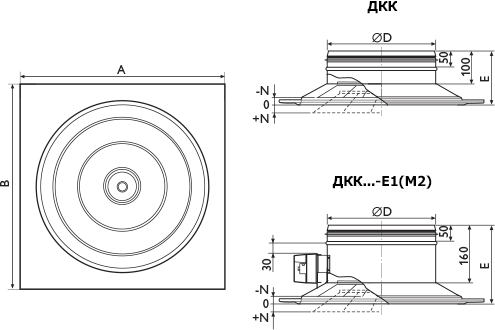 Диффузоры ДКК...-E1, ДКК...-М2 позволяют реализовать систему с автоматическим изменением схемы воздухораспределения в зависимости от времени года (кондиционирование/вентиляция/воздушное отопление). Диффузоры встраиваются в подвесные потолки, при этом обеспечивается настилание горизонтальной струи на потолок. Монтаж диффузоров осуществляется с помощью присоединительного патрубка, который крепится к воздуховоду или патрубку камеры статического давления саморезами или заклепками. Герметичность соединения обеспечивается резиновым уплотнением. ДДиффузоры изготавливаются из стали и окрашиваются методом порошкового напыления в белый цвет (RAL 9016). При изготовлении на заказ возможна окраска диффузоров в любой цвет по каталогу RAL. |