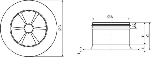 Вихревые диффузоры ДКВ...-Т предназначены для подачи воздуха системами вентиляции и кондиционирования в неизотермическом режиме из верхней зоны помещения. Диффузоры состоят из корпуса с подводящим патрубком, внутри которого расположен термопривод и блок поворотных лопаток, угол наклона которых регулируется с помощью термопривода в диапазоне от α=0° до α=50° относительно направления потока. Изменением угла наклона лопаток достигается формирование дальнобойной компактной струи (α=0°) при подаче нагретого воздуха в режиме воздушного отопления, или горизонтальной веерной струи (α=50°) при подаче охлажденного воздуха в режиме кондиционирования. Диффузоры ДКВ...-Т предназначены для реализации систем с автоматическим изменением схемы воздухораспределения в зависимости от времени года (кондиционирование/вентиляция/воздушное отопление). Наличие термопривода обеспечивает эффективное и автономное (без участия человека) регулирование формы воздушной струи в зависимости от температуры приточного воздуха. Создание систем воздухораспределения с автоматическим сезонным регулированием на базе диффузоров с термоприводами обеспечивает существенную экономию благодаря отсутствию дорогостоящих электроприводов и приборов автоматики. Кроме того, отсутствие питающих и сигнальных кабелей значительно облегчает монтаж и повышает эксплуатационную надежность вентиляционной системы в целом. Диффузоры устанавливаются на отводах круглых воздуховодов при открытой прокладке воздуховодов или встраиваются в подвесные потолки, при этом обеспечивается настилание горизонтальной струи на потолок. Монтаж диффузоров осуществляется с помощью присоединительного патрубка, который крепится к воздуховоду или патрубку камеры статического давления саморезами или заклепками. Герметичность соединения обеспечивается резиновым уплотнением. Диффузоры изготавливаются из стали и окрашиваются методом порошкового напыления в белый цвет (RAL 9016). При изготовлении на заказ возможна окраска диффузоров в любой цвет по каталогу RAL. |
