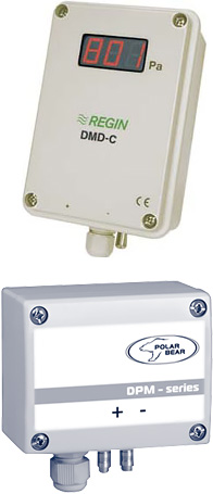 Дифференциальные регуляторы давления DMD-С и DPM-С 2000-Modbus предназначены для измерения разности давления воздуха, других неагрессивных газовых сред и для управления работой смесительных заслонок, частотных преобразователей, VAV-систем и т. д. Конструкция регуляторов разработана для настенного монтажа. На передней панели DMD-C расположен трехразрядный светодиодный индикаторный дисплей, который отображает значение измеряемого давления. DPM-С 2000-Modbus выпускается без дисплея и оснащается интерфейсом RS485 для подключения к сетям распределенного управления по протоколу Modbus RTU. В регуляторах предусмотрена возможность ручного изменения пределов измерения давления, т. е. можно выбрать один из четырех диапазонов: 0–100 Па,