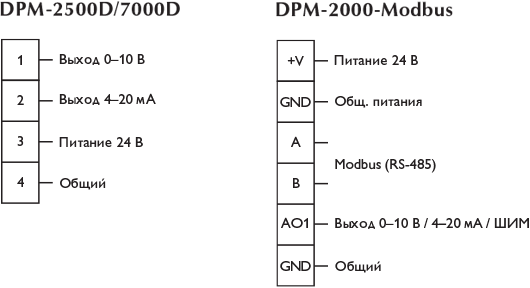 0–10 В, 0–20 мА, ШИМ |