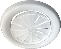 Диффузоры ДПУ-В предназначены для подачи воздуха системами вентиляции и кондиционирования в помещениях различного назначения. Диффузор ДПУ-В состоит из корпуса, присоединительного патрубка и подвижной закручивающей центральной вставки. При перемещении закручивающей центральной вставки вдоль оси корпуса изменяется вид формируемой приточной струи: от вертикальной смыкающейся конической до горизонтальной веерной. Монтаж осуществляется с помощью присоединительного патрубка, который крепится самонарезающими винтами к воздуховоду или к подшивному потолку. Диффузоры изготавливаются из полипропилена белого цвета. При изготовлении диффузоров ДПУ‑B на заказ возможна окраска в любой цвет по каталогу «Эксклюзив». |