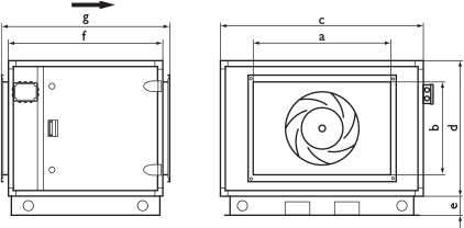 Вентиляторы предназначены для подвесного или напольного монтажа. Вентиляторы оснащены рамой. В случае напольного монтажа вентиляторы могут быть укомплектованы регулируемыми по высоте опорами (опция). Стандартное исполнение вентиляторов еВЕНТ ЕС – правое.