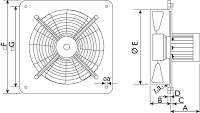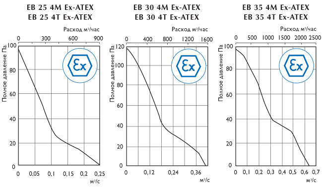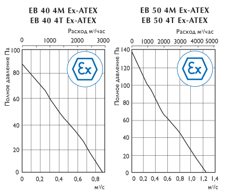 Осевые взрывозащищенные вентиляторы типа ЕB Ex-ATEX предназначены для установки на стене или панелях. Они оснащены взрывозащищенным асинхронным двигателем с короткозамкнутым ротором и уплотненными подшипниками, что увеличивает срок их службы.