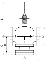 Двухходовой вентиль полностью открыт, когда шток находится в нижнем положении, и закрыт, когда шток находится в верхнем положении. Трехходовой вентиль перекрывает расположенные один напротив другого проходные отверстия 2 и 1, когда шток находится в верхнем положении. В этом же положении штока вентиль открыт между отверстиями 3 и 1. Если шток находится в нижнем положении, трехходовой вентиль полностью открыт между отверстиями 2 и 1 и закрыт между отверстиями 3 и 1. Вентили должны устанавливаться так, чтобы направление стрелки совпадало с направлением потока жидкости.