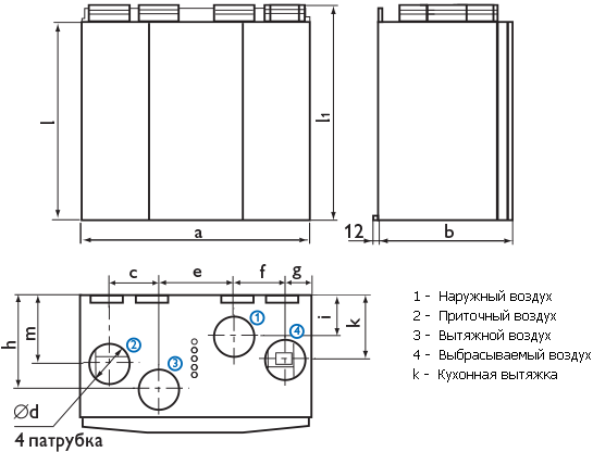 Установки HERU T устанавливаются на стене патрубками вверх или на полу дверцей вверх.