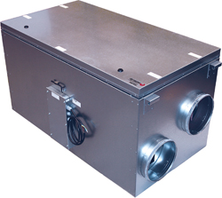 В компактном тепло-, звукоизолированном корпусе с толщиной изоляции 50 мм размещены: роторный регенератор, утилизирующий теплоту удаляемого воздуха (КПД теплоутилизации до 85%), приточный и вытяжной фильтры класса очистки F7, электрический калорифер, приточный и вытяжной вентиляторы, отсек приборов автоматического управления. Вентиляторы оборудованы асинхронными двигателями или энергоэффективными электронно-коммутируемыми двигателями (EC-двигателями).