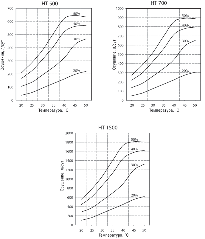 Промышленные осушители HT специально сконструированы для использования в помещениях с высокой температурой воздуха (от 15 до 60°С).