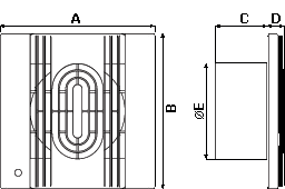 IN A НT. Стандартное исполнение с автоматическими жалюзи, датчиком влажности и встроенным электронным таймером. Вентилятор включается автоматически при превышении заданного на датчике уровня влажности (в диапазоне 40-90%) и выключается при понижении влажности с задержкой по таймеру. Таймер устанавливается на время от 2 до 25 мин.
