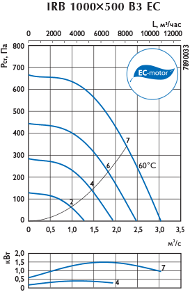 Канальные вентиляторы в изолированном корпусе IRB EC оснащены электронно-коммутируемым двигателем (EC-двигателем) с внешним ротором и рабочим колесом с загнутыми назад лопатками. Двигатель и рабочее колесо вентилятора расположены на откидывающейся пластине, что делает доступ к ним лёгким, быстрым и удобным. Корпус вентилятора изготавливается из оцинкованной стали. Вентиляторы имеют внутренний 50 мм слой изоляции из минеральной ваты, покрытой грубой шерстяной тканью, что обеспечивает низкие шумовые характеристики. Вентиляторы IRB ЕС предназначены для соединения с воздуховодами прямоугольного сечения. Степень защиты электродвигателя IP 44 или IP 54 (см. таблицу "Технические характеристики"), клеммной коробки – IP 54. Преимущества вентиляторов IRB EC