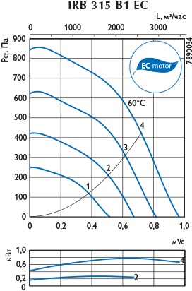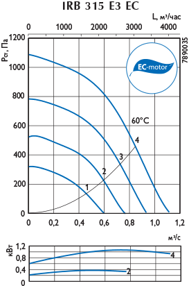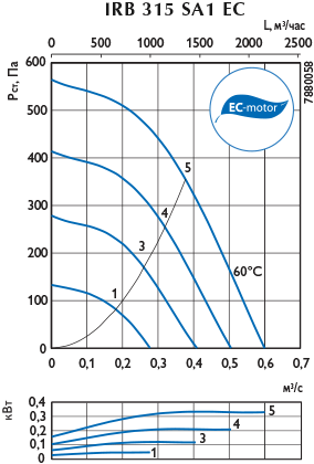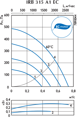 Канальные вентиляторы в изолированном корпусе IRB EC оснащены электронно-коммутируемым двигателем (EC-двигателем) с внешним ротором и рабочим колесом с загнутыми назад лопатками. Двигатель и рабочее колесо вентилятора расположены на откидывающейся пластине, что делает доступ к ним лёгким, быстрым и удобным. Корпус вентилятора изготавливается из оцинкованной стали. Вентиляторы имеют внутренний 50 мм слой изоляции из минеральной ваты, покрытой грубой шерстяной тканью, что обеспечивает низкие шумовые характеристики. Вентиляторы IRB ЕС предназначены для соединения с воздуховодами круглого сечения. Степень защиты электродвигателя IP 44 или IP 54 (см. таблицу "Технические характеристики"), клеммной коробки – IP 54. Преимущества вентиляторов IRB EC