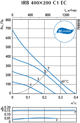 Канальные вентиляторы в изолированном корпусе IRB EC оснащены электронно-коммутируемым двигателем (EC-двигателем) с внешним ротором и рабочим колесом с загнутыми назад лопатками. Двигатель и рабочее колесо вентилятора расположены на откидывающейся пластине, что делает доступ к ним лёгким, быстрым и удобным. Корпус вентилятора изготавливается из оцинкованной стали. Вентиляторы имеют внутренний 50 мм слой изоляции из минеральной ваты, покрытой грубой шерстяной тканью, что обеспечивает низкие шумовые характеристики. Вентиляторы IRB ЕС предназначены для соединения с воздуховодами прямоугольного сечения. Степень защиты электродвигателя IP 44 или IP 54 (см. таблицу "Технические характеристики"), клеммной коробки – IP 54. Преимущества вентиляторов IRB EC