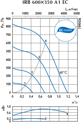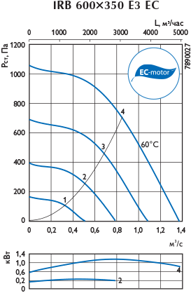 Канальные вентиляторы в изолированном корпусе IRB EC оснащены электронно-коммутируемым двигателем (EC-двигателем) с внешним ротором и рабочим колесом с загнутыми назад лопатками. Двигатель и рабочее колесо вентилятора расположены на откидывающейся пластине, что делает доступ к ним лёгким, быстрым и удобным. Корпус вентилятора изготавливается из оцинкованной стали. Вентиляторы имеют внутренний 50 мм слой изоляции из минеральной ваты, покрытой грубой шерстяной тканью, что обеспечивает низкие шумовые характеристики. Вентиляторы IRB ЕС предназначены для соединения с воздуховодами прямоугольного сечения. Степень защиты электродвигателя IP 44 или IP 54 (см. таблицу "Технические характеристики"), клеммной коробки – IP 54. Преимущества вентиляторов IRB EC