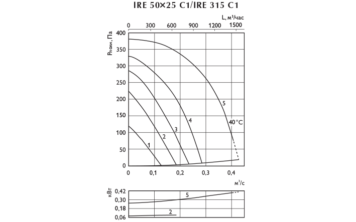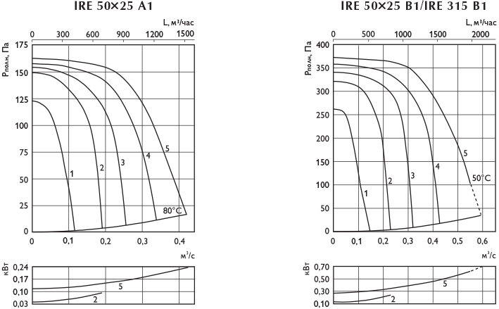 Тип вентилятора  IRE 50x25 A1  50x25 B1  50x25 C1
