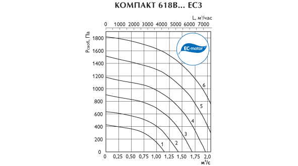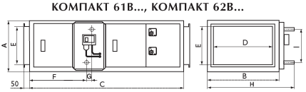 В компактном тепло-, звукоизолированном корпусе с толщиной изоляции 25 мм размещены: фильтр класса очистки G3, водяной калорифер и вентилятор с загнутыми вперед лопатками (двигатель с короткозамкнутым ротором в установках Компакт-6 или энергоэффективный электронно-коммутируемый двигатель (EC-двигатель) в установках Компакт-6 ЕС). Для индикации степени загрязнения фильтра предусмотрен датчик давления.