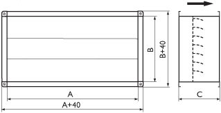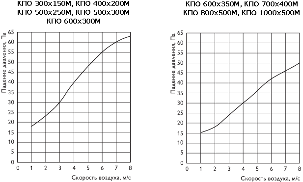 Обратные клапаны КПО предназначены для автоматического перекрывания воздуховодов в системах приточной и вытяжной вентиляции при выключении вентиляторов. Корпус клапана с прямоугольными фланцами изготовлен из оцинкованной стали, внутрь которого вставлены алюминиевые лопасти инерционной решетки. Лопасти герметизированы самоклеящейся лентой из вспененного полиэтилена. Клапан должен устанавливаться так, чтобы решетка располагалась вертикально, лопастями вниз.