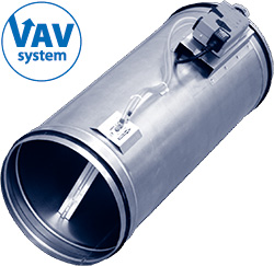 Регуляторы переменного расхода воздуха КПРК для воздуховодов круглого сечения предназначены для поддержания заданного значения расхода воздуха в системах вентиляции с переменным расходом воздуха (VAV) или с постоянным расходом воздуха (CAV). В режиме VAV уставка расхода воздуха может изменяться с помощью сигнала от внешнего датчика, контроллера или от системы диспетчеризации, в режиме CAV регуляторы поддерживают заданный расход воздуха Основными компонентами регуляторов расхода являются воздушный клапан, специальный приемник давления (зонд) для измерения расхода воздуха и электропривод со встроенным контроллером и датчиком давления. Разность полного и статического давлений на измерительном зонде зависит от расхода воздуха через регулятор. Текущая разность давлений измеряется встроенным в электропривод датчиком давления. Электропривод под управлением встроенного контроллера открывает или закрывает воздушный клапан, поддерживая расход воздуха через регулятор на заданном уровне. Регуляторы КПРК могут работать в нескольких режимах в зависимости от схемы подключения и настройки. Уставки расхода воздуха в м3/час задаются при программировании на заводе-изготовителе. При необходимости, уставки могут быть изменены с помощью смартфона (с поддержкой NFC), программатора, компьютера или системой диспетчеризации по протоколу MP-bus, Modbus, LonWorks или KNX. Регуляторы выпускаются в двенадцати исполнениях: