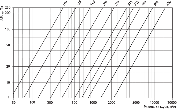 Примечание: Расход воздуха приведен для плотности воздуха ρ = 1,2 кг/м3 (20°С, 50% отн. вл., 1013 мбар).