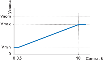 Расход воздуха будет изменяться в соответствии с внешним управляющим сигналом 0…10 В (или 2…10 В) от потенциометра, контроллера и пр. Диапазон изменения расхода воздуха: Vмин при сигнале 0 В (или 2 В) Vмакс при сигнале 10 В. Возможна настройка на аналоговый сигнал управления от 0 до 32 В. | ||||||||||||||||||||||||||||||||||||||||||||||||||||||||||||||||||||||||||||||||||||||||||||||||||||||||||||||||||||||||||||||||||||||||||||||||||||||||||||||||||||||||||||||||||||||||||||||||||||||||||||||||||||||||||||||||||||||||||||||||||||||||||||||||||||||||||||||||||||||||||||||||||||||||||||||||||||||||||||||||||||||||||||||||||||||||||||||||||||||||