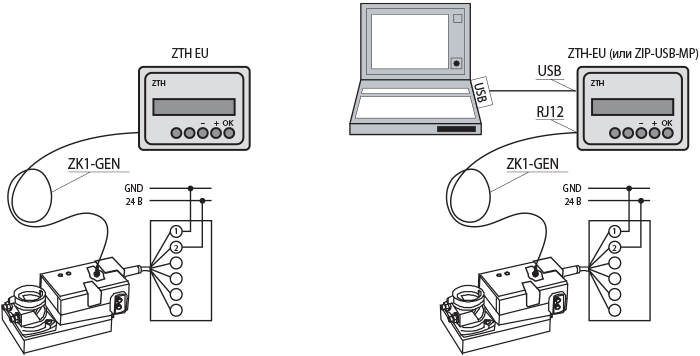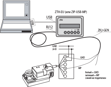 Непосредственное подключение к электроприводу Программатор ZTH-EU является универсальным устройством, может использоваться как самостоятельно, так и в качестве адаптера для подключения компьютера