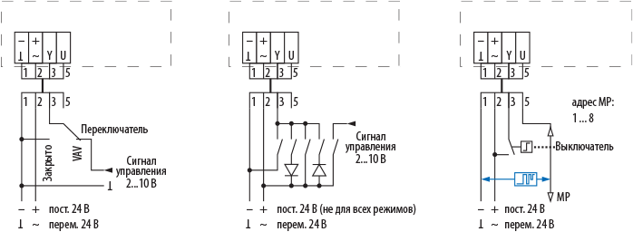 Внимание: при использовании цифровой шины MP-Bus, например, для подключения оптимизатора работы вентиляторов, системы диспетчеризации и пр., аналоговый сигнал обратной связи использоваться не может. Данные о текущем положении заслонки и расходе воздуха возможно получить только в цифровом виде по шине MP-Bus. | ||||||||||||||||||||||||||||||||||||||||||||||||||||||||||||||||||||||||||||||||||||||||||||||||||||||||||||||||||||||||||||||||||||||||||||||||||||||||||||||||||||||||||||||||||||||||||||||||||||||||||||||||||||||||||||||||||||||||||||||||||||||||||||||||||||||||||||||||||||||||||||||||||||||||||||||||||||||||||||||||||||||||||||||||||||||||||||||||||||||||