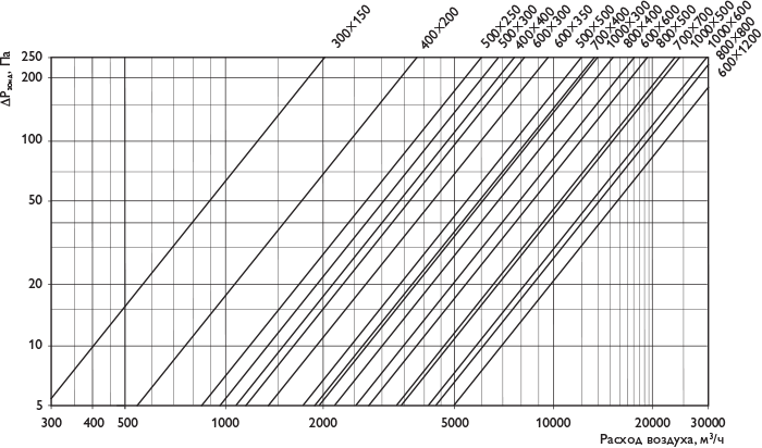 Примечание: Расход воздуха приведен для плотности воздуха ρ = 1,2 кг/м3 (20°С, 50% отн. вл., 1013 мбар).
