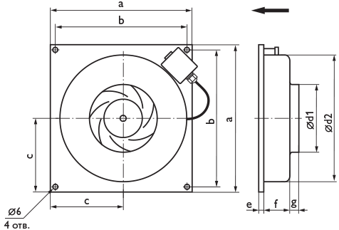 Настенные вентиляторы KVFU оснащены асинхронным двигателем с внешним ротором и рабочим колесом с загнутыми назад лопатками. Корпус вентиляторов изготавливается из оцинкованной стали.