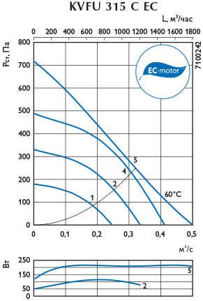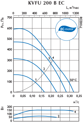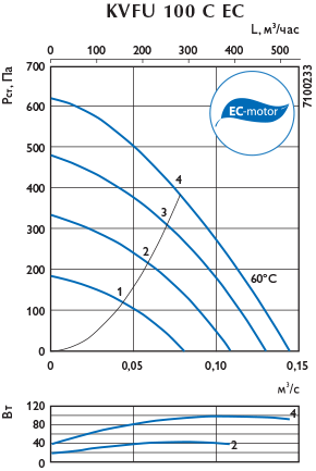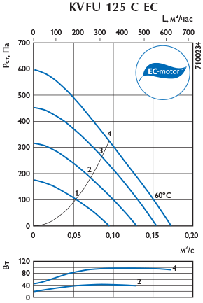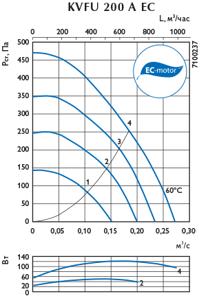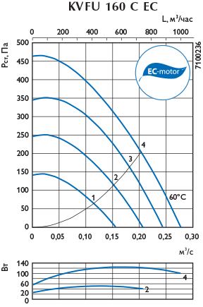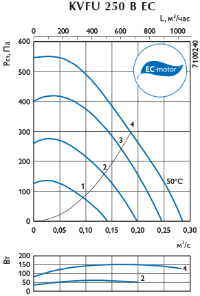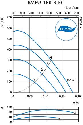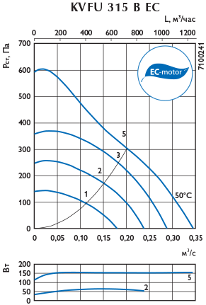 Вентиляторы KVFU EC имеют типоразмеры от 100 до 315 мм и предназначены для соединения с воздуховодами круглого сечения. Степень защиты электродвигателя IP 44 или IP 54 (см. таблицу "Технические характеристики"), клеммной коробки – IP 54.