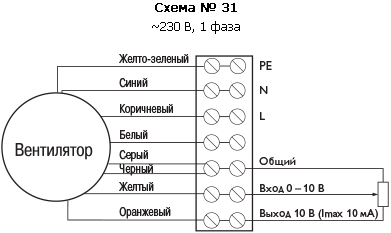 0 до 100% с помощью встроенного потенциометра или внешним сигналом 0–10 В. Потенциометр установлен в клеммной коробке и при необходимости управления внешним регулятором встроенный потенциометр необходимо отключить.